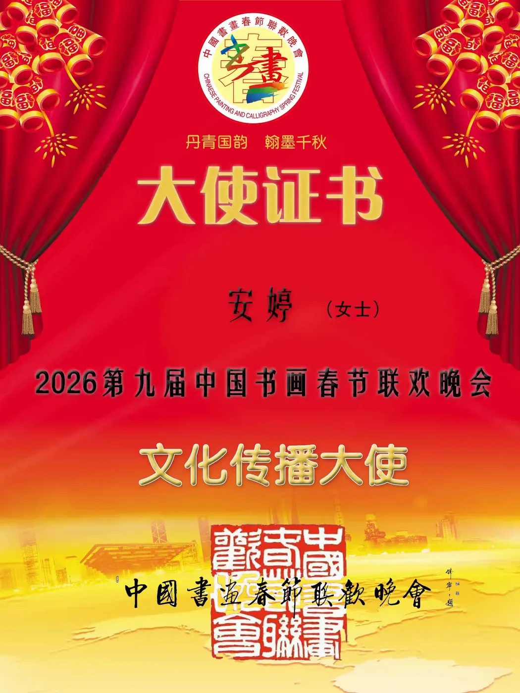 第九届中国书画春节联欢晚会文化传播大使一一安婷