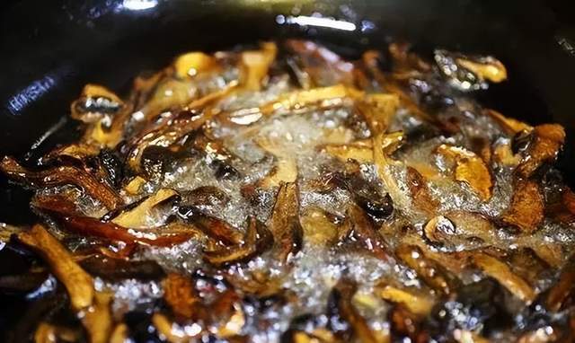 生炸法其特点是油多火旺,用这种烹调方法加工的原料加热前一般须用调味品浸渍,晾干水气,然后再下油锅炸至色泽金黄或者水分收干。生炸菌的特点是香、酥、醇厚。适宜生炸的有鸡枞、虎掌菌、牛肝菌、干巴菌等。