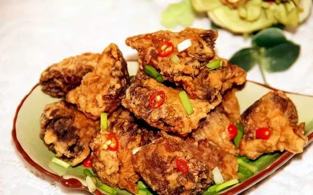 挂糊炸是炸的一种形式,它是将原料包裹上淀粉或者蛋糊、糯米皮再放到油锅之中炸至成熟。它要求外焦里嫩,色泽金黄。适宜挂糊炸的有鸡枞、松茸、青头菌、猴头菌、牛肝菌等。