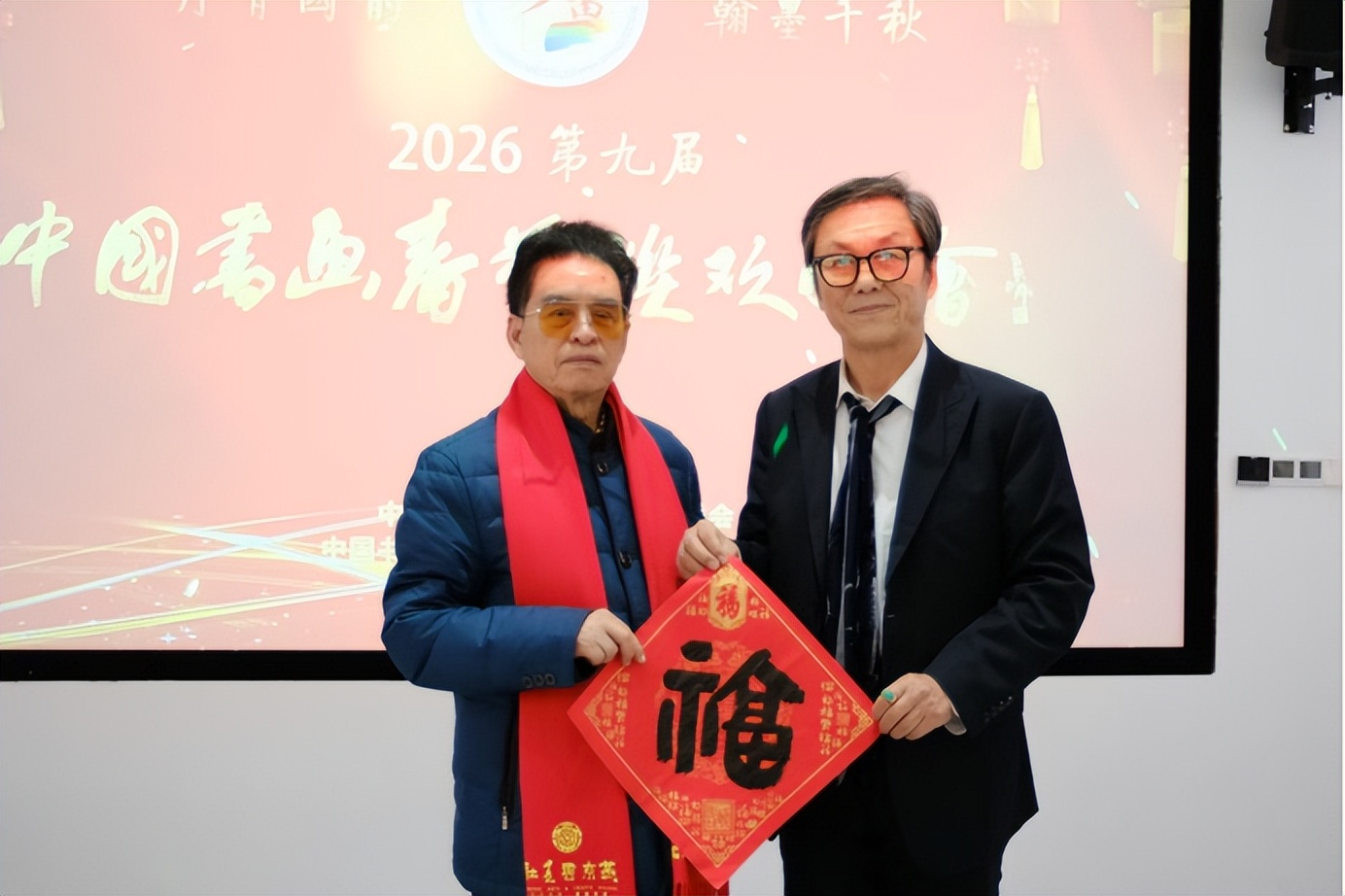 中国书画春晚广西会场名誉顾问韦克义与总策划、总导演吴新博共同挥毫,落笔写“福”,笔力沉稳、寓意吉祥,正式拉开现场创作序幕。