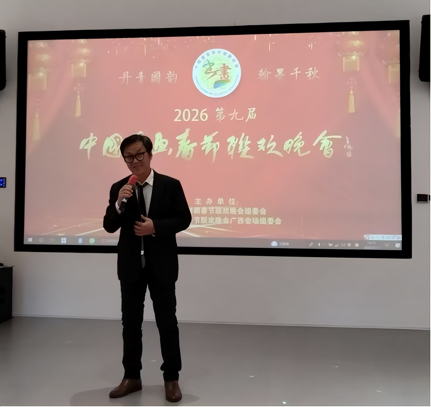 中国书画春晚广西会场组委会秘书长邓海林就会场组织、流程安排与后续工作作说明,感谢各界支持与艺术家参与。
