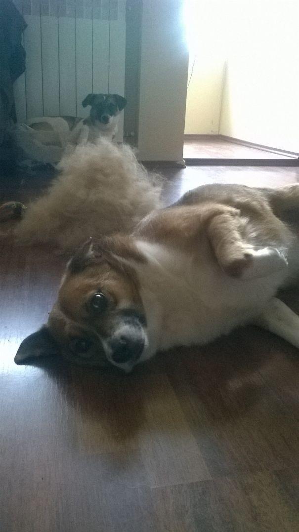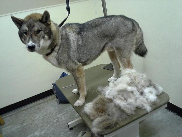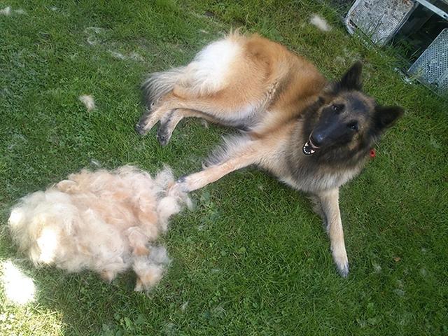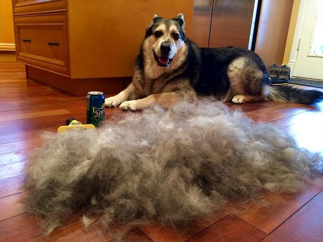 12. 我的狗狗掉了好多毛,我差点就能用这些毛再做一只小狗了。