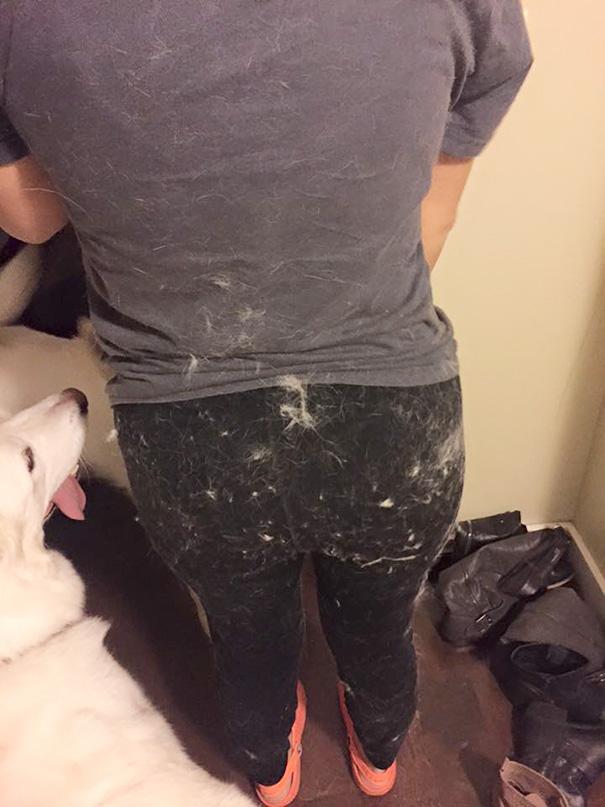 9. 看看我的新衬衫,我在想他们为什么要设计这种粘毛的面料?难道不知道这世界上有多少宠物会掉毛吗?