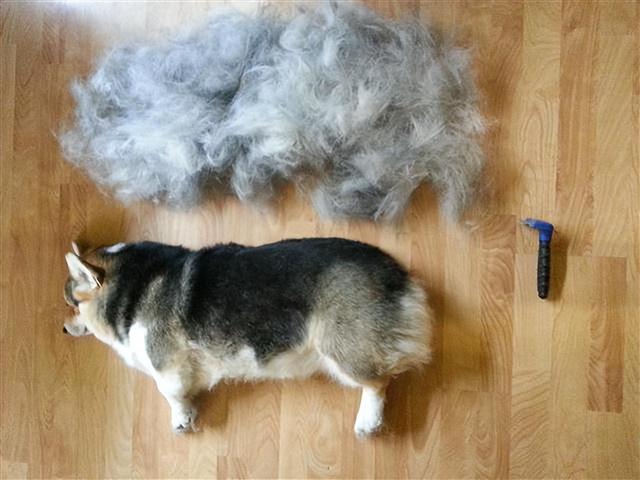 4. 今天给我那“毛绒绒”的柯基梳理了毛发。她的底层毛发似乎违反了物理定律,实在是太浓密了。