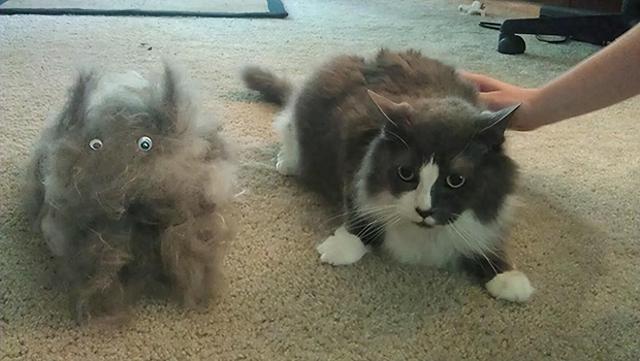 1. 我们从我的猫身上梳理出了一堆毛,仿佛又得到了一只“新猫”。