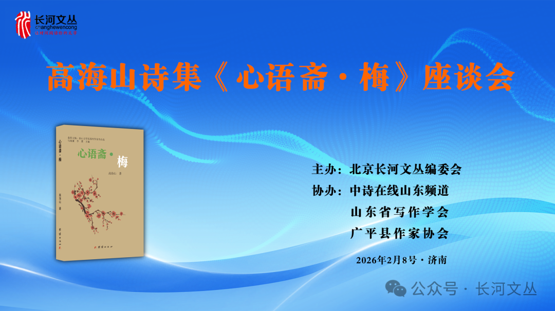人人文学网(李浩然报道):松窗闲吟抒雅意,心语斋梅绽诗香。2月8日上午,由北京长河文丛编委会主办,中诗在线山东频道、山东省写作学会、广平县作家协会联合协办的“高海山诗集《心语斋•梅》座谈会”在济南举行。本次座谈会汇聚省内外诗词界、文学界专家学者与诗人,共同品读高海山古体诗创作成果,探讨传统诗词的当代传承与创新。