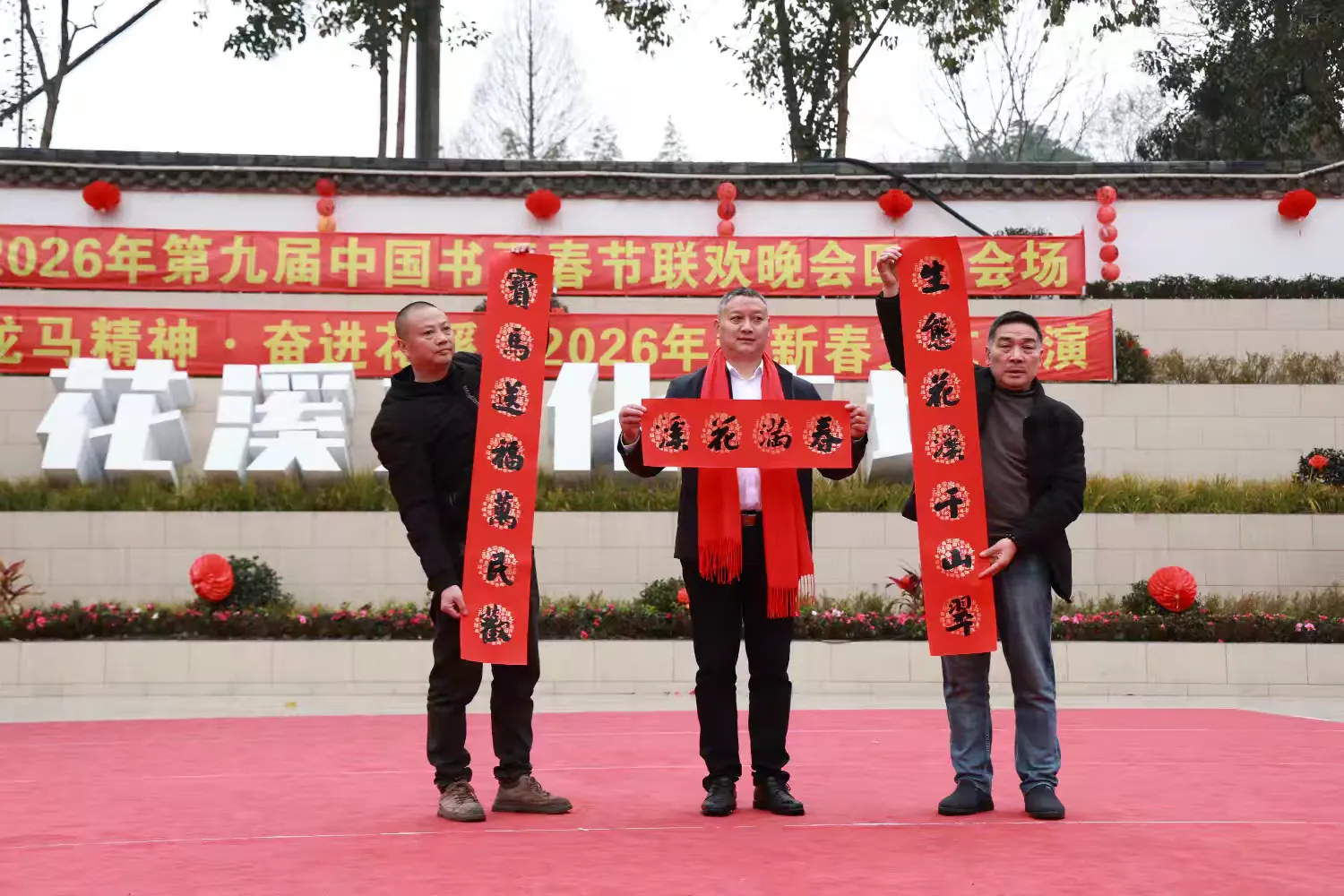 据悉,第九届中国书画春节联欢晚会以“丹青国韵,翰墨迎春”为核心主题,深耕传统文化沃土,推动书画艺术走进基层、服务群众,此次四川会场落地花溪社区,更是将书画艺术与社区文化、民俗风情深度融合,彰显了巴蜀文化的独特魅力与新时代基层文化建设的丰硕成果。活动得到社会各界广泛支持,般若寺、天一公司、小熊猫森林公园、瀚锦园林公司、聚福康生物科技公司等驻花溪单位携手赴会;中国书画春节联欢晚会总策划总导演王博生,北京生态摄影协会会长高菡,中国书画春晚主持人丁然,都江堰青年摄影家协会受邀出席;第九届中国书画春节联欢晚会四川会场总策划龚大成、总导演左顺勇全程参与活动,与全体花溪居民欢聚一堂,共贺2026丙午马年新春,共话文化传承,共谋社区发展。