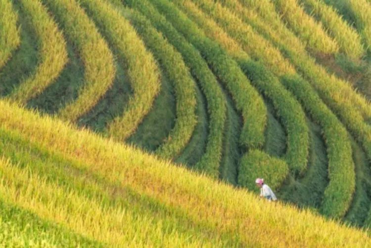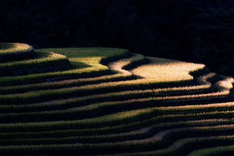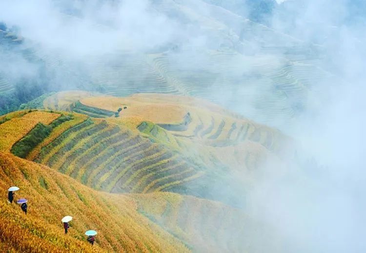 在这个季节,稻谷满山,千层浪涌,层层梯田醉眼球。金秋时节,谷子满田黄,丰收在望迎客忙。满山的稻穗摇曳着饱满丰盈的身姿随风扭摆,远方的黛山与近处的稻浪构成了秋的成熟与韵味。千级梯田或星罗棋布,成片错落有致,或整个山坡层层叠叠,或一畦零星散布。