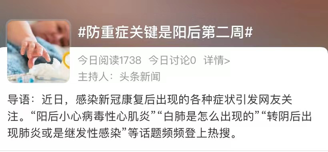 因此,经历“阳”后,我们的身体本身也受到了极大的消耗。尤其在阳后第二周,若症状持续,甚至变差,则说明病毒感染并未消除,甚至有发展成危重症的可能。