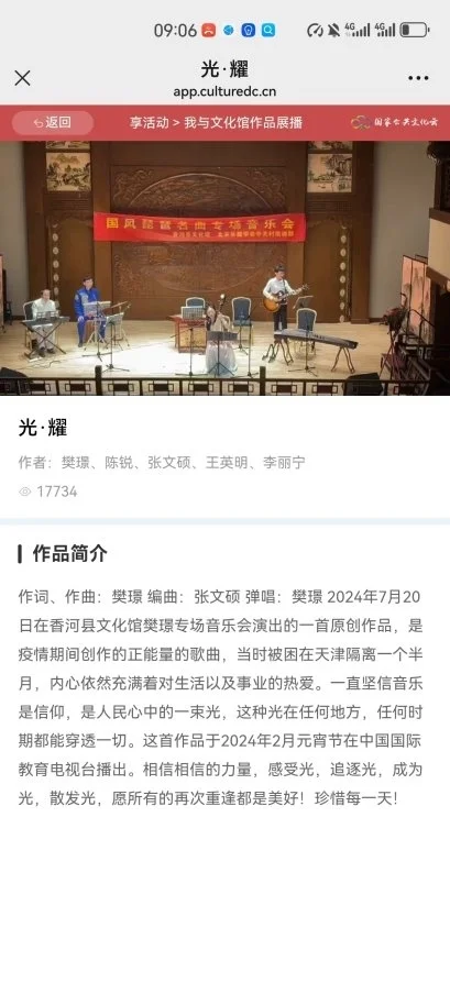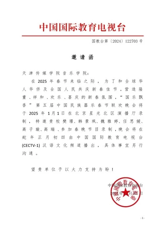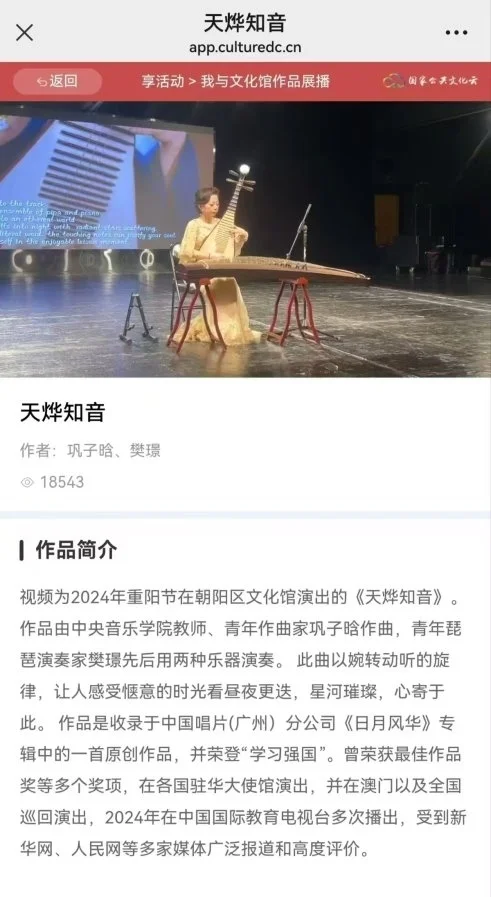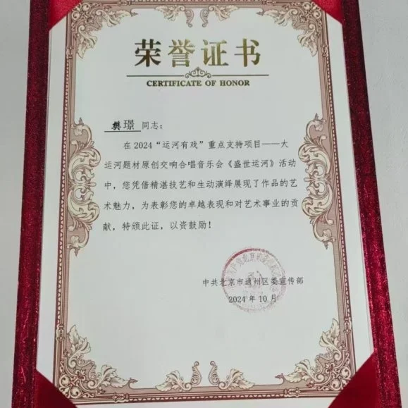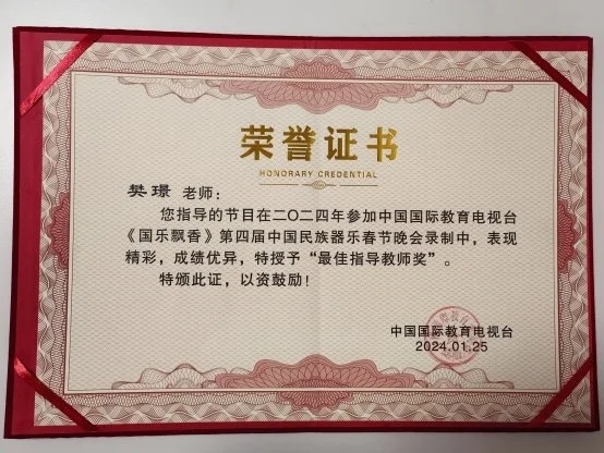 2024年,与天津传媒学院学生参加中国国际教育电视台演出。个人原创作品《光》获得金奖。