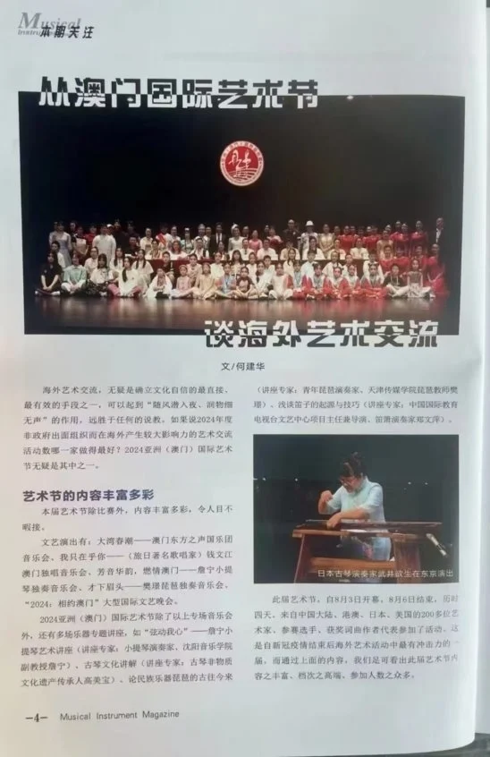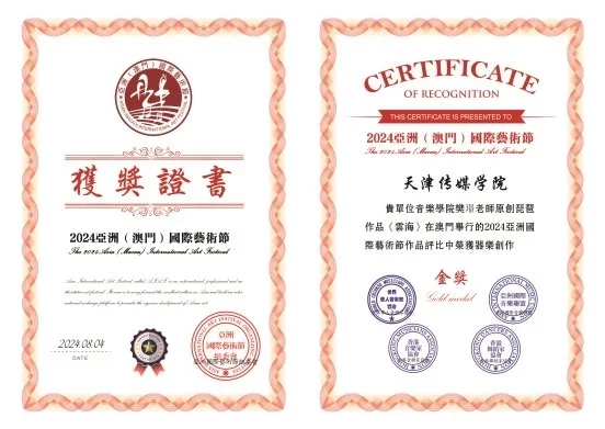 2024年,在澳门举办音乐会和讲座,原创作品《云海》获得金奖。音乐会被记录在国家级核心刊物《乐器》中,并在中国国际教育电视台播出。