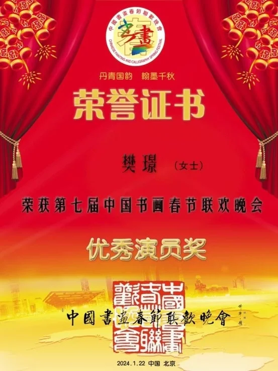 2024年,樊璟参加第七届中国书画春节联欢晚会。
