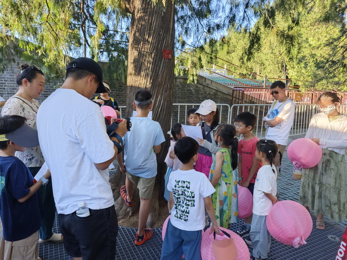 在天坛公园和先农坛,中小学生们分别体验了《九龙柏》和《一亩三分地》的传说。