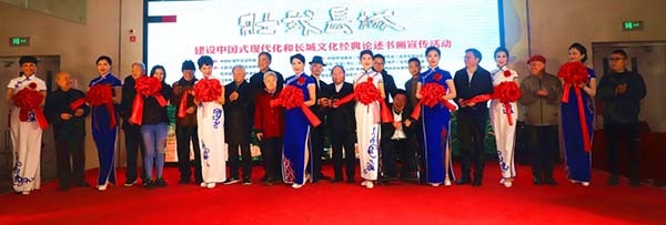 代表为“壮我长城”书画展览宣传活动剪彩。