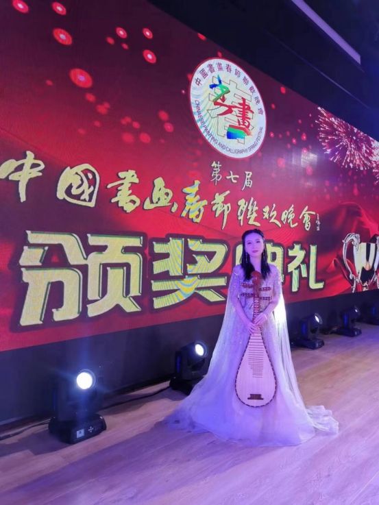 1月22日,樊璟老师被邀请参与了由北京市顺义区委宣传部、顺义区文旅局等单位共同主办,由王博生总导演、北京翰墨东方书画院张东辉院长等策划的2024第七届中国书画春节联欢晚会。巩子晗老师的作品《天烨知音》由樊璟老师首演,得到了现场观众的热烈欢迎。该节目是晚会受邀参演的唯一一首器乐曲,荣获此次春晚优秀节目和演员奖。一笔一心语,一墨一飞花,一乐一世界!书画与音乐的有机结合,给人们带来了美轮美奂的心灵震撼。