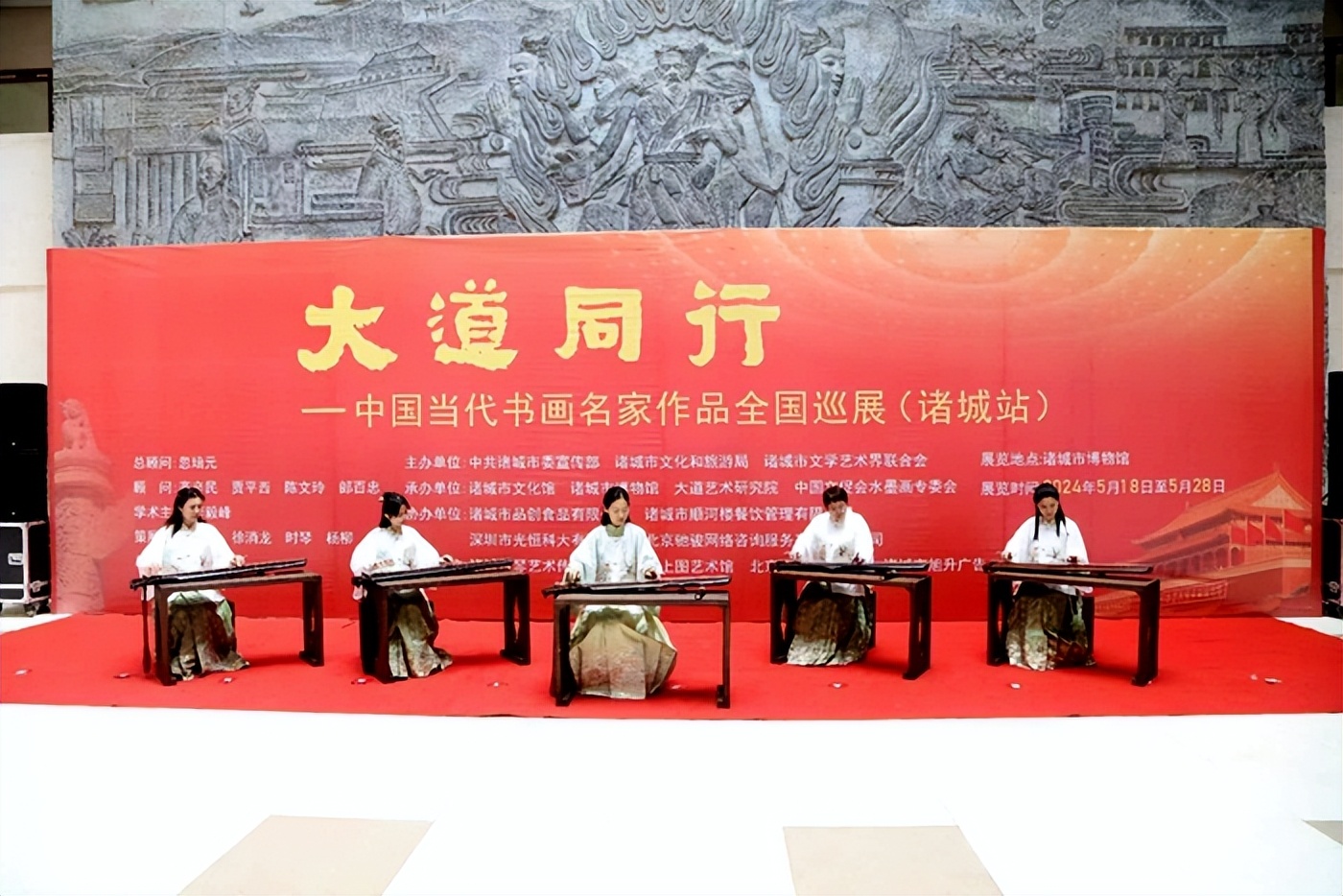本次展览得到了诸城市委宣传部,诸城市文学艺术界联合会,诸城市文旅局,诸城市文化馆,诸城市博物馆,大道艺术研究院,中国文促会水墨专委会,企业家日报社艺术研究院,北京驰骏网络咨询服务有限责任公司,北京三人行琴行,北京汉保国际集团,诸城市品创食品有限公司,诸城市顺河楼餐饮管理有限公司,深圳市光恒科大有限公司,山东华元集团,诸城古琴艺术传习中心,诸城上图艺术馆,诸城市安益商贸有限公司,诸城市兆恒运文化有限公司、安徽省劲松文化传媒有限公司的大力支持 ,感谢多年来一直支持大道同行的领导和艺术家们,他们为继承和弘扬中华民族传统文化做出的巨大贡献。
