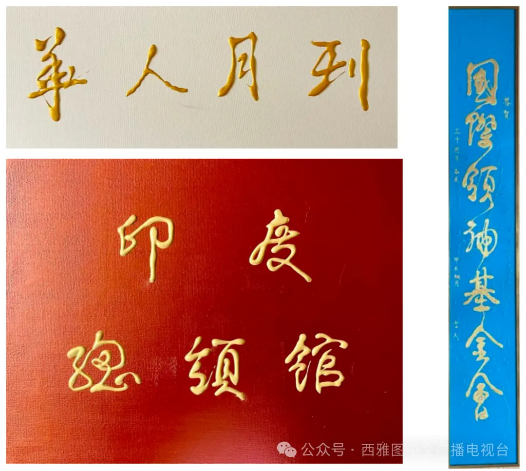 雷人跟我们分享了他创作华人月刊和印度总领馆,国际领袖基金会的细节,他说:“古今中外,不用笔,能‘遛’出这样工整,遒劲的汉字,收到如此的丰富肌理,难之又难!我感到这是天成神品。每次创作开始前,我要凝神静气,酝酿良久,揣摩每一起止,每一转折,顿挫,并且反复地比划,打腹稿。”