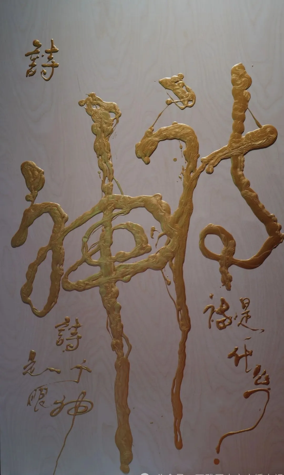 3000年传统水墨书法,平躺了3000年!雷人的遛金立体书法,让平躺了3000多年的书法站起来了!