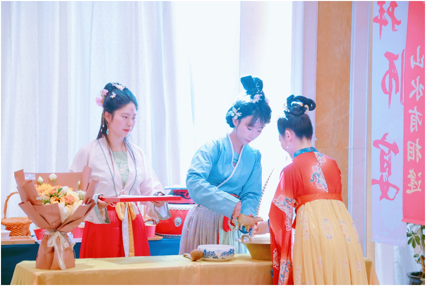 此次拜师礼出席的嘉宾:资深礼乐研究者、北京文化促进会礼乐专委会主任贾福林老师、中国农业大学茶工场主任王如良教授、北京德方育华学校香文化研究中心主任路语老师、中国旅游文化网总编周步先生、中国音乐学院高级古筝教师杨帆老师、资深媒体人与著名书法家牛伟先生、中国非物质文化遗产研究网运营总监张宁先生、中国社会工作联合会企业公民与工会社会工作委员会副总干事、徐霞客画院名誉院长柴宏先生、顺义区舞蹈协会理事会副主席子娟老师、稷阳学宫/一净国风摄影/汉服 TV 创始人/北京电视台《食全食美》栏目编辑韩立强老师、北京德方育华学校礼乐文化中心梁尘老师,自媒体人/汉服模特柳含烟老师、中华全国总工会文工团中华礼乐传承培训班谭为飞老师、司礼官李子姩先生(礼乐大典与礼乐太学主理人)等。