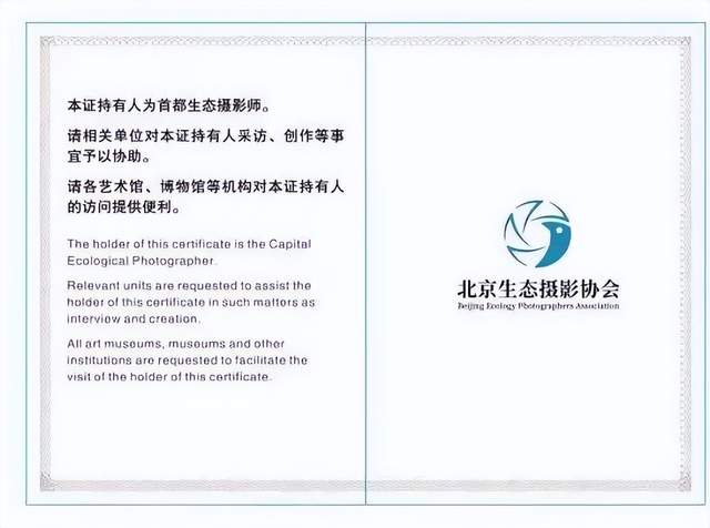 北京生态摄影协会采访证(会员证、首都生态摄影师)诚邀全国优秀摄影家及摄影爱好者申请入会