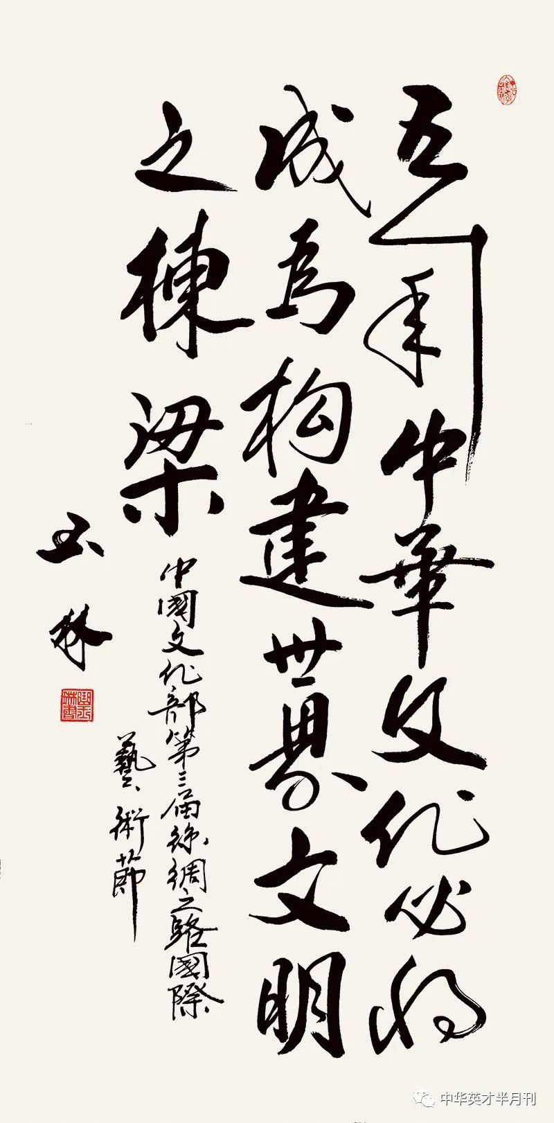 《五千年中华文化必将成为构建世界文明之栋梁》——为中国文化部第三届丝绸之路国际艺术节题书