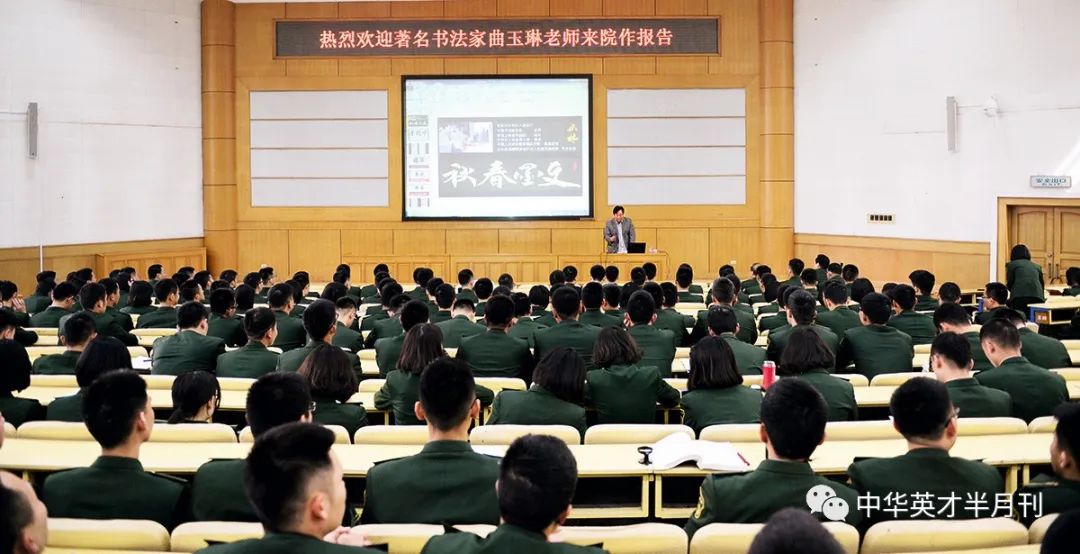 在曲玉琳的课堂或讲座上,谈古论今,纵横天地,因打破了书法、武术、诗词、写作等艺术门类的边界而妙趣横生,备受学生们喜爱。“古老的书法艺术代代传承,决不能在我们这一代缺失了足迹。它不仅是我的宝,也是民族的宝,后人的宝。它是中国的骄傲,是五千年文明的精粹,每一个深知书法魅力的人,每一个愿意为书法艺术倾力奉献的人,都应该有强烈的忧患意识,倾尽全力,为书法艺术的传承和发扬,有所作为。”掷地有声的话语,激荡着一颗颗年轻的心灵。