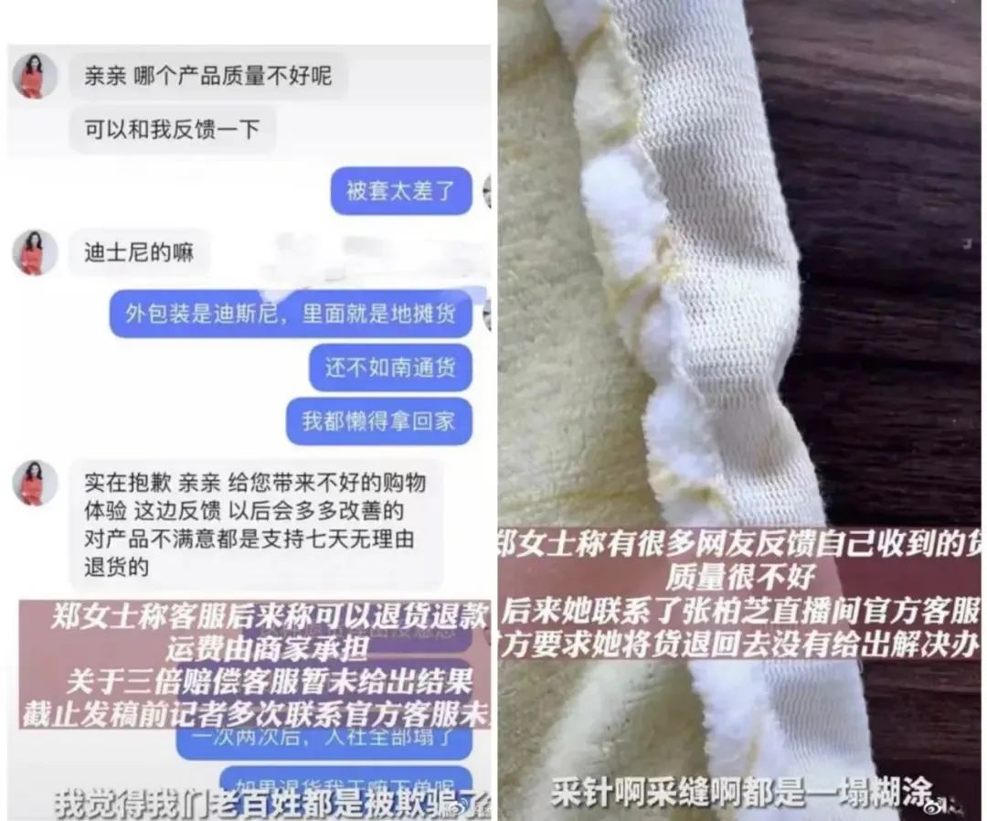 去年11月,张柏芝首次尝试直播带货,被吐槽选品不精致、直播规模小,她本人普通话生硬,对产品了解不够,甚至个别产品都叫不上名字。但两场直播依然带来高达1.3亿的GMV(商品交易总额)。玩票都能取得如此“战绩”,似乎给了张柏芝更多从事带货主播的信心。时隔近一年,2022年10月13日张柏芝再次带货直播,不再只是个“明星吉祥物”,讲品过程中她说话变多,普通话也比以前更顺溜了。在讲解客单价并不高的食品时,她大口嗦粉的场景被网友称赞。最终当天,直播间销量超过100万件商品,销量额超1亿元,张柏芝当场兴奋喊话:“我终于做到一个亿的生意了。”此后,张柏芝流量体质再次发威。先是有网友发现,衣着宽松的张柏芝小腹微涨,有所谓的“知情人”抖料,煞有介事地声称她怀了四胎。顺着这个话题,网友又引申到“是否与谢霆锋复合”“孩子父亲到底是谁”等话题。10月23日,有网友晒出相关证据,称在张柏芝直播间购买的299元迪士尼四件套质量与直播时的描述不一致,疑似“张柏芝卖假货”。这套原价2319元的“柏芝专享”迪士尼牛奶丝绒套件大礼包,针脚线头不规整,个别地方出现裂口。该网友“愤怒“表示自己是冲着张柏芝买的。当时在直播间表示是迪士尼联名,赠送的空调毯在迪士尼也要卖几百块,张柏芝表示要给儿子带一套回去。这次“翻车”并没有影响到张柏芝,商家一句“不满意可以退货,承担运费险”即打发了顾客的不满,甚至不需要张柏芝团队发出解释声明。假使闹起来,张柏芝背后的公司也有处理负面新闻的经验和能力。2022年张柏芝签约了一家叫“遥望科技”的公司,旗下还有贾乃亮、娄艺潇、辰亦儒、王祖蓝等多位大家熟知的明星主播。今年7月,该公司刚“处理”过贾乃亮因参与趣店罗敏直播带货,而引起的网络舆论事件。11月1日直播中,贾乃亮现身张柏芝直播间,两人互动良好,甚至有网友开玩笑喊出“两人在一起”。先导视频中,两人一起跳舞、比爱心,同样刷了不少存在感。专业团队加持,张柏芝直播带货效果明显,根据“蝉妈妈”预估的数据,最近4场直播,张柏芝销售总额在2.5亿到5亿之间。在抖音有如此成绩的主播,屈指可数。2021年张柏芝参加《浪姐2》,她在节目中安心做个“美丽废物”的人设,给节目带来不少话题性。但她一直“划水”的表现,即便湖南卫视是真爱,也没有让她“成团”。叠加当下综艺大环境,以及其早年在综艺节目上“乱说”的表现,张柏芝后期的通告并没有增加很多。作为演员,42岁的张柏芝已经多年没有影视作品了。有人气、人很美、偶有惊世骇俗的言语,能完美承接张柏芝的地方,短视频平台或许是不错的选择。况且谁不知道直播带货的钞能力,可以挣钱养活一大家子。