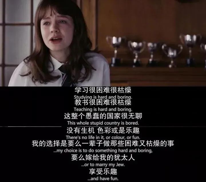 “教我的老师从剑桥毕业,到最后还不是要辛苦教书,既然如此,我为什么还要选一条又辛苦又难走的路,而不是和富有的丈夫享受人生?”