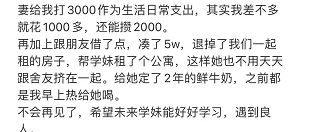 另一边,是把学校省下来的钱给学妹租公寓、买礼物、订牛奶。