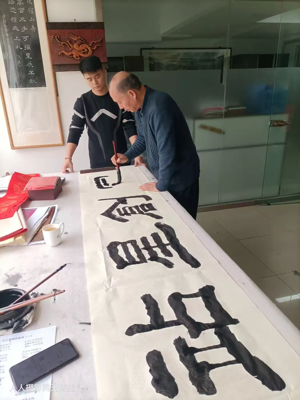 中国书画春节联欢晚会渭南会场顾问著名军旅书法家刘建武老师新年送福字送春联。第八届中国书画春晚楹联(春联)大赛书法金奖,第八届中国书画春晚十大书法家。刘老师在北京中广盛唔书画院为第八届中国书画春节联欢晚会广东(深圳)会场题字。刘老师为我创作《志博云天》书法作品。[抱拳][抱拳][福][福][强][强]