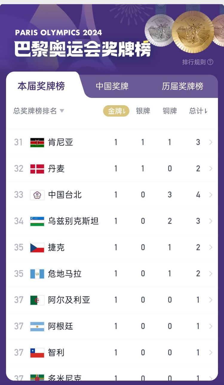 巴黎奥运会金牌榜最新榜单(8月7日)!中国代表团22金暂列第一!!